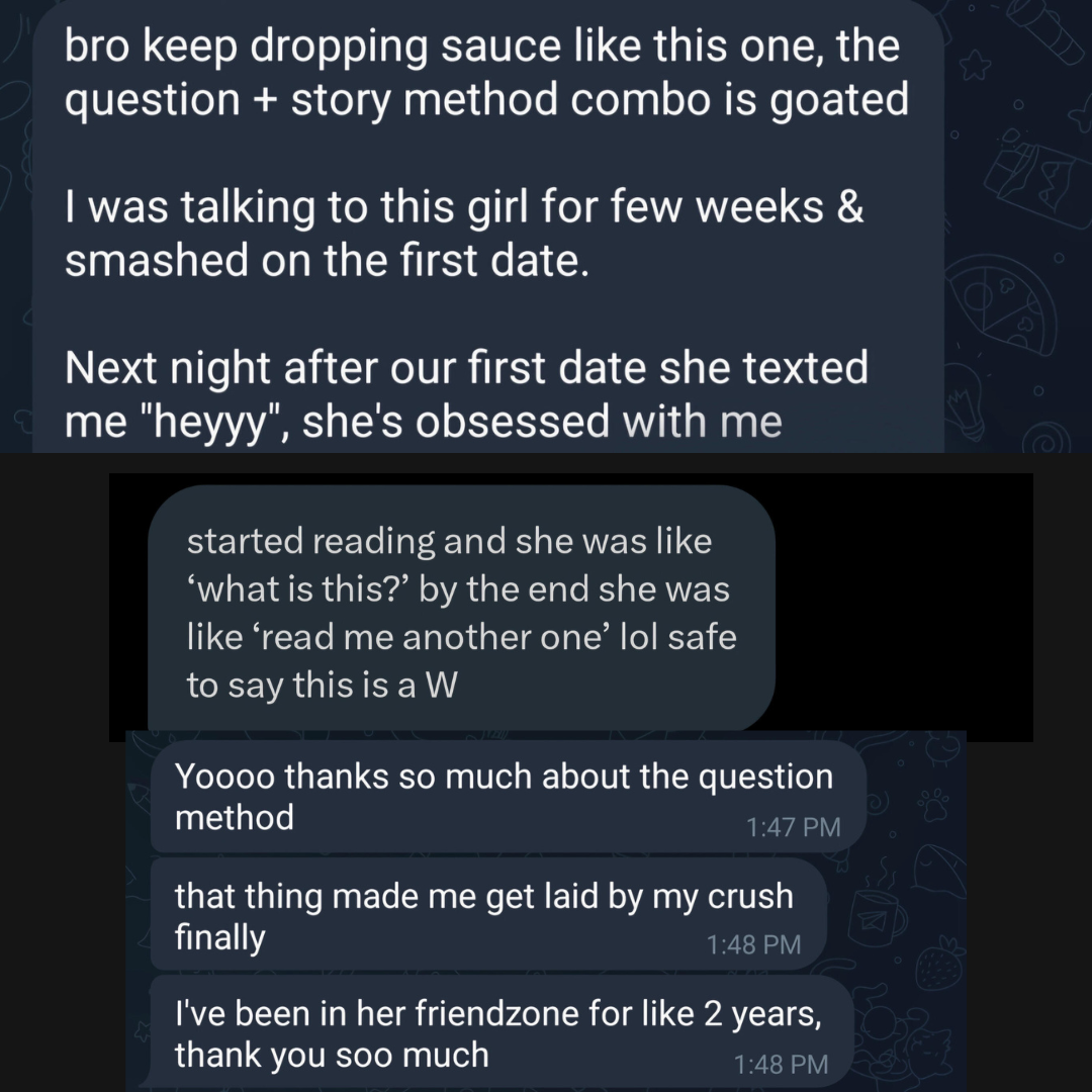 Instead of guessing what to say or relying on pressure, you control the frame, trigger curiosity, and stimulate her mind in a way that makes her lean in on her own.